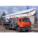 Аренда автовышки KOHO 50 на шасси Daewoo Ultra Novus 251PS, высота подачи 50 метров.